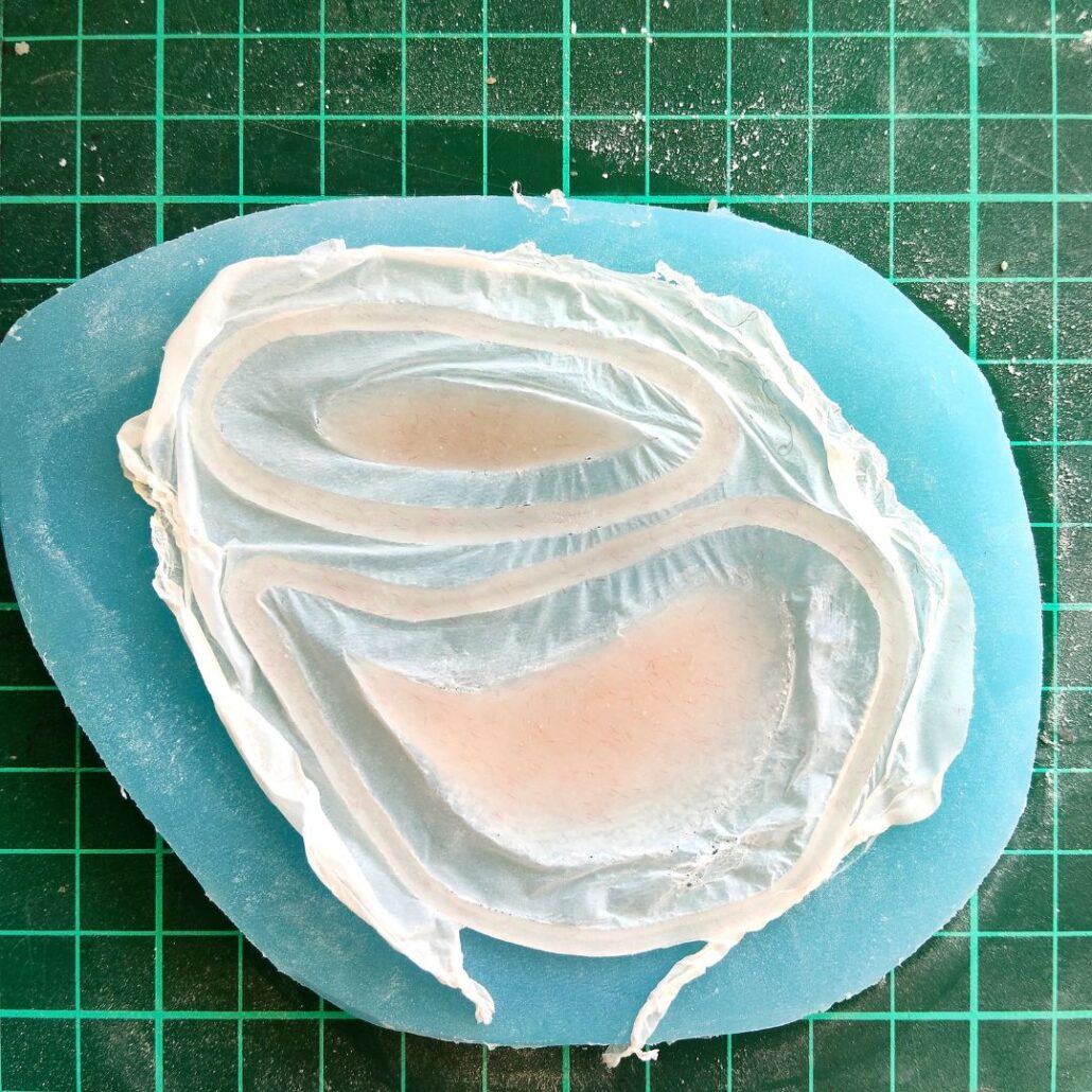 Plaats de prosthetic op het jukbeen met Pros-Aide en werk de randen voorzichtig weg met aceton. Poeder het oppervlak af zodat het niet meer plakt.