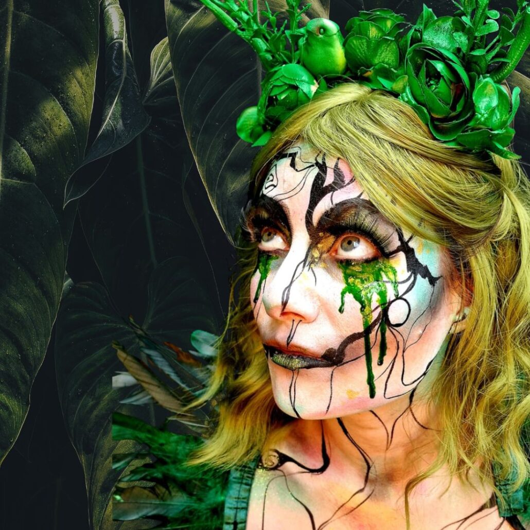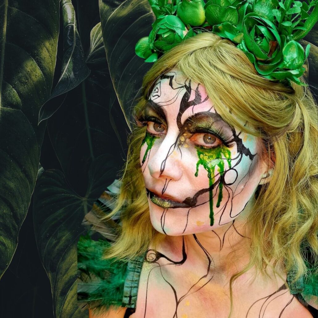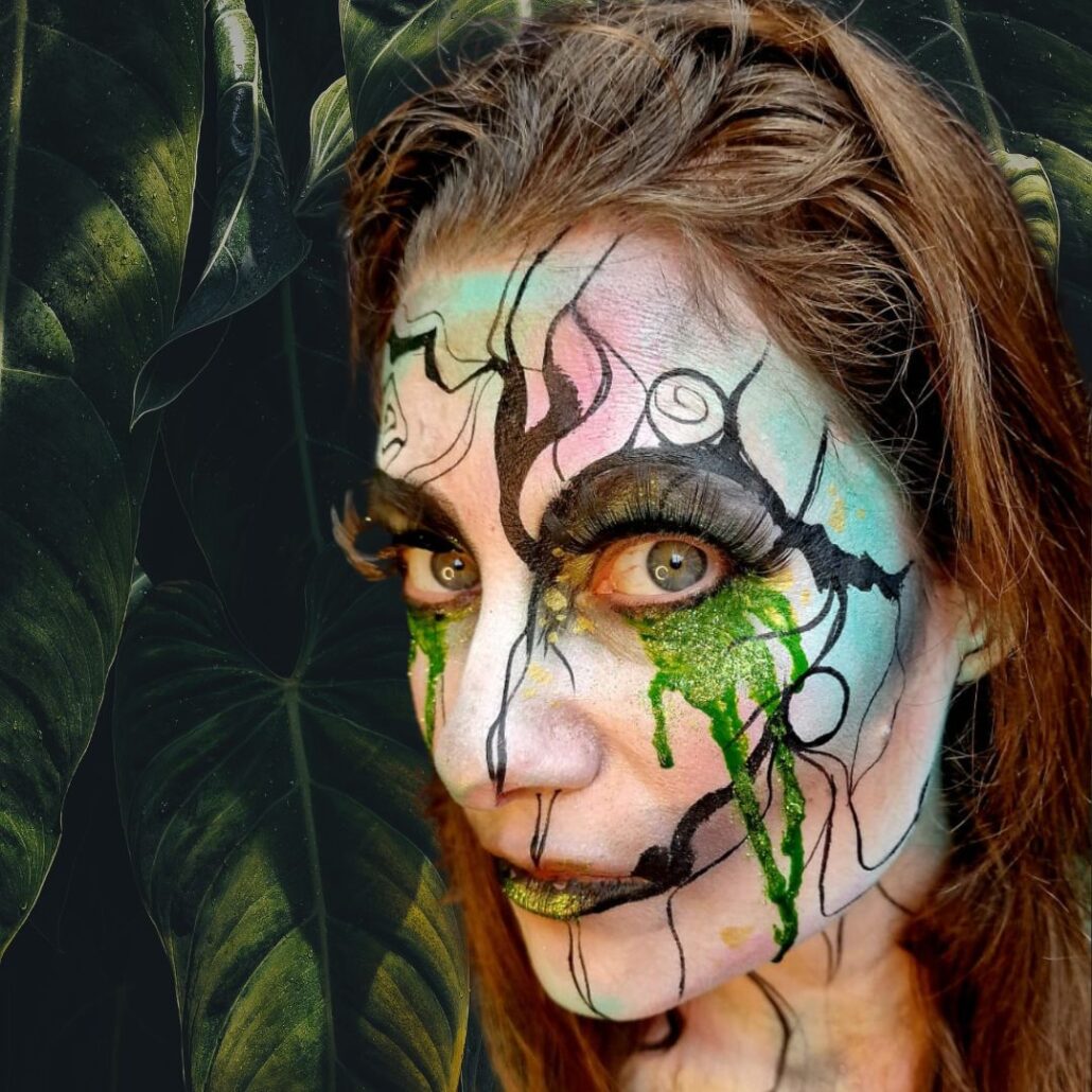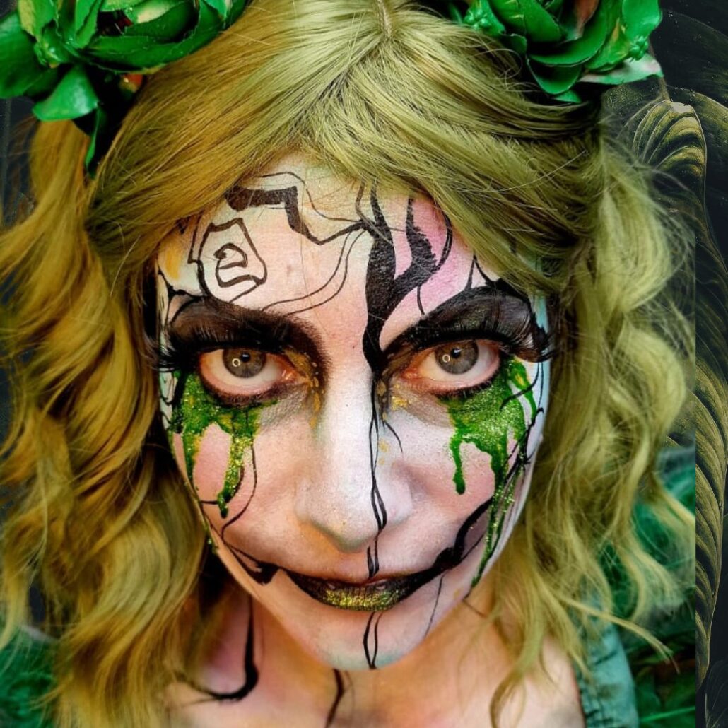 Ben jij op zoek naar een creatieve en mysterieuze look voor Halloween? Dan is deze elf schmink van Syl Verberk een echte aanrader! Met sprankelende kleuren, dramatische details en groene tranen ontstaat er een betoverende en toch griezelige uitstraling. Ideaal voor wie opvalt tijdens een Halloweenfeest of cosplay-evenement.