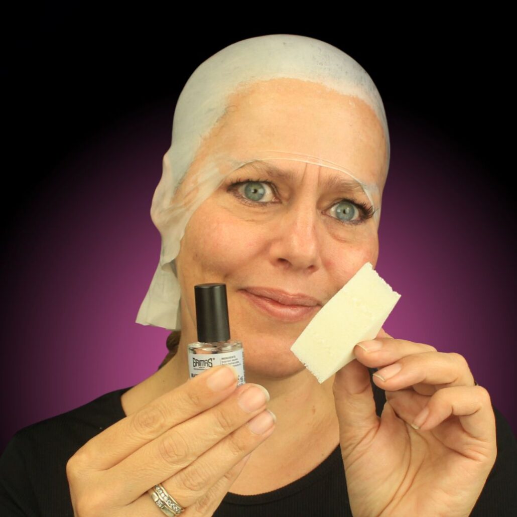 Voor het werken met de Grimas Bald Cap gebruik je een paar essentiële producten. Met deze materialen maak je de cap stevig vast en blend je hem onzichtbaar weg. Alle producten vind je uiteraard in onze online Schminkwinkel. Dit blog is gemaakt met alleen Grimas producten