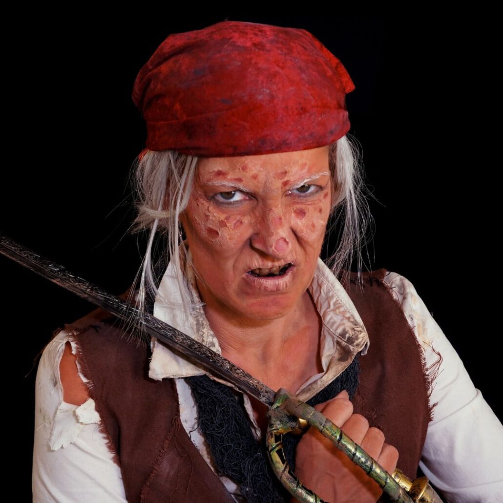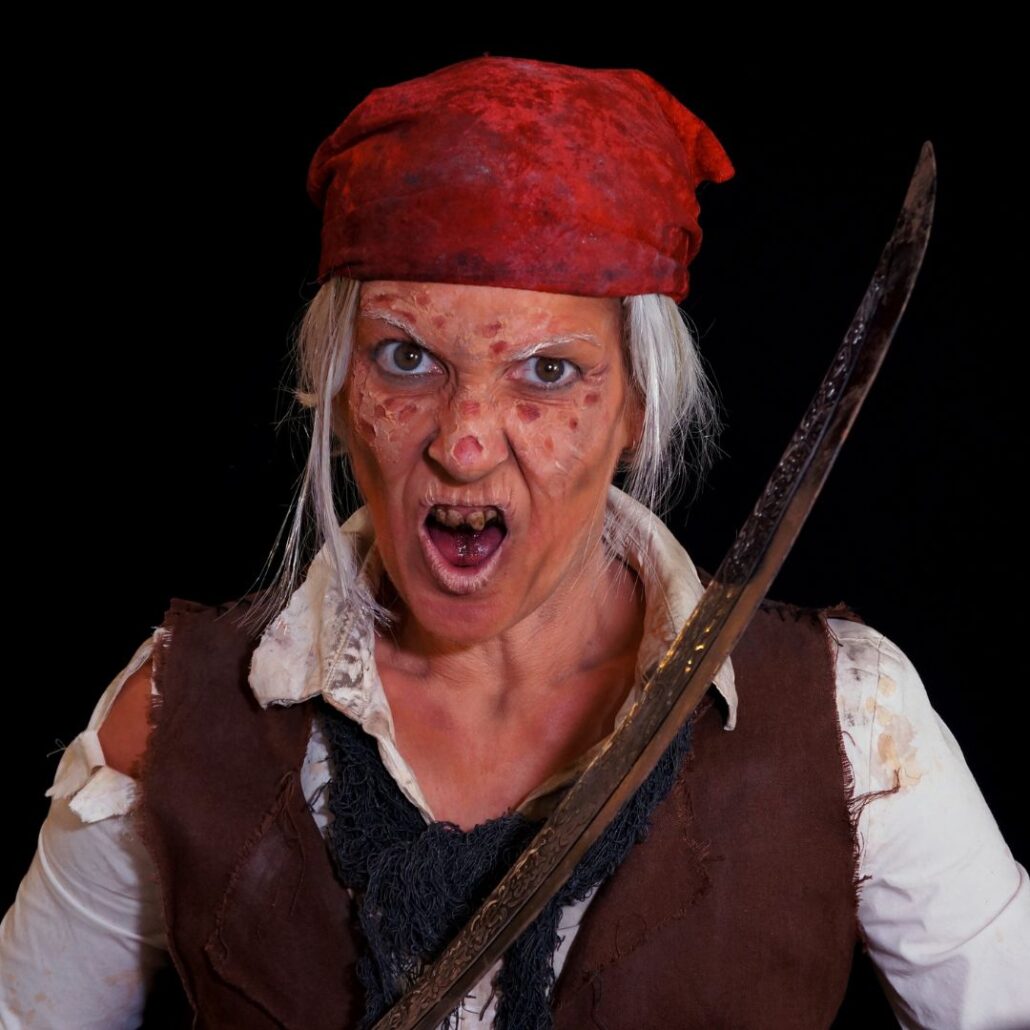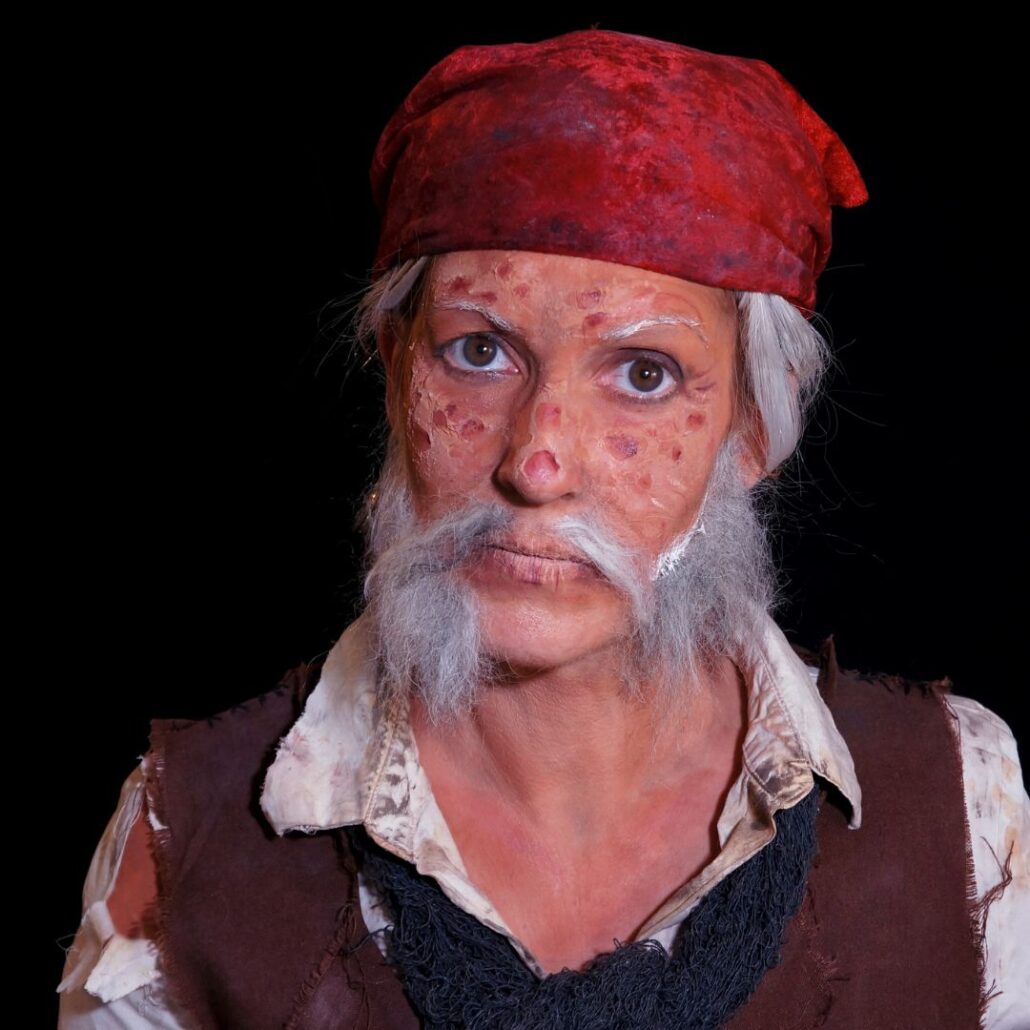 Ben jij klaar om dit jaar écht indruk te maken met Halloween? Met deze Halloween piraat schmink verander je in een ruige piraat die al weken op een onbewoond eiland heeft overleefd. Denk aan een verbrande huid, blaren, vervellingen en een smerige uitstraling – perfect voor een angstaanjagend feestje!