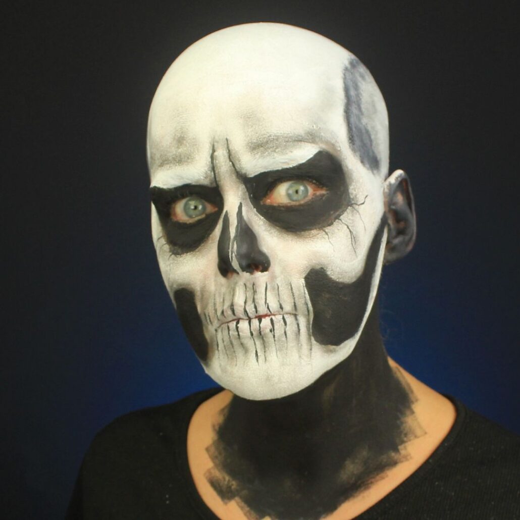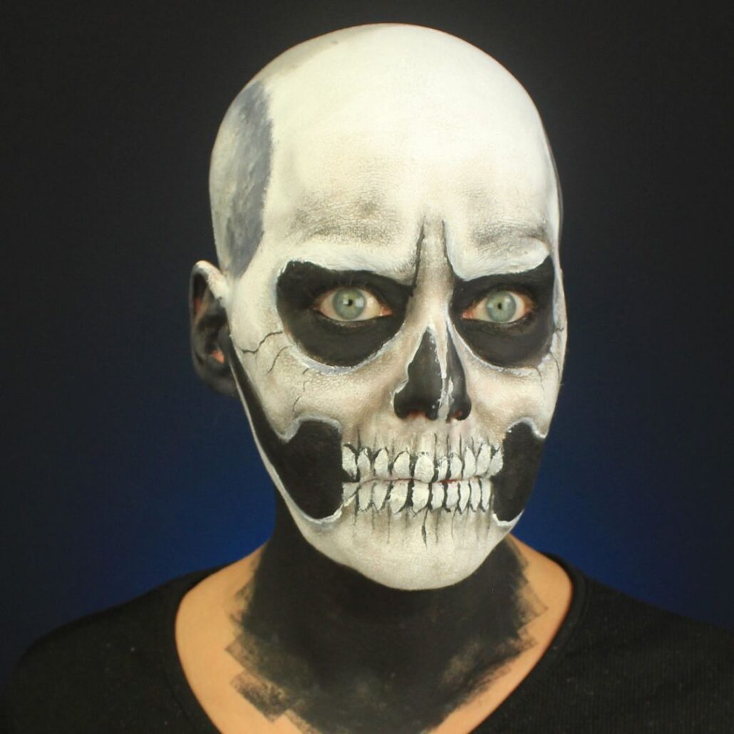 Wil je meer zien? Kijk dan bij onze Halloween Schmink Voorbeelden en SFX Make-up Tutorials. Alles wat je nodig hebt voor deze Halloween Skull vind je natuurlijk in onze webwinkel. Heb je vragen? Stuur me gerust een berichtje; ik denk graag met je mee.