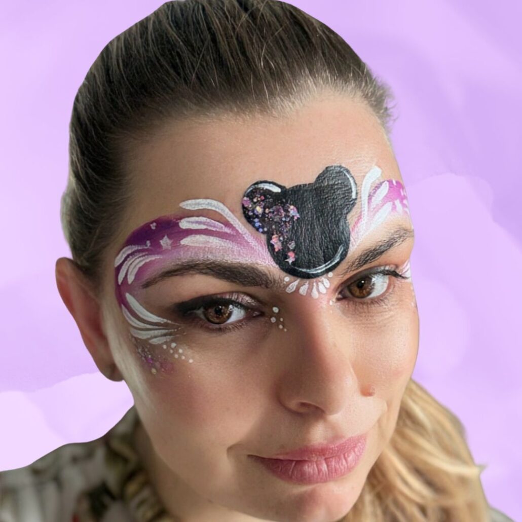 Een vrolijke en schattige Minnie Mouse schmink met glitter, sierlijke lijnen en een speels karakter. Perfect voor kinderfeestjes, carnaval, of een verkleedpartij. Deze look is een van de vele leuke schmink voorbeelden die je op ons blog kunt volgen. Snuffel zeker nog even rond en probeer er een paar.