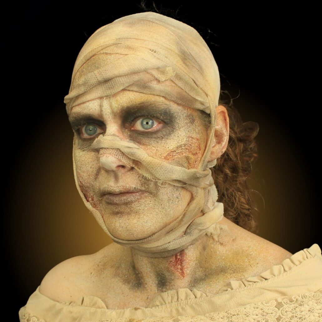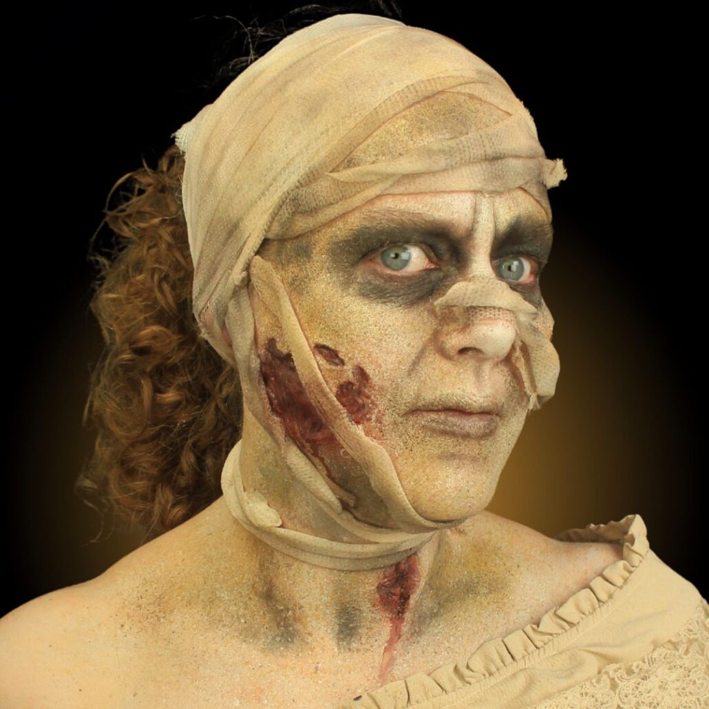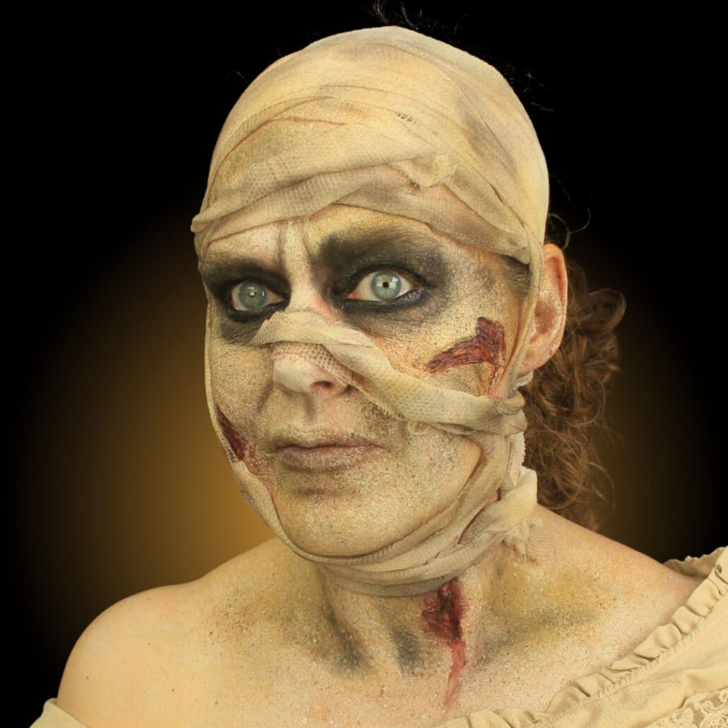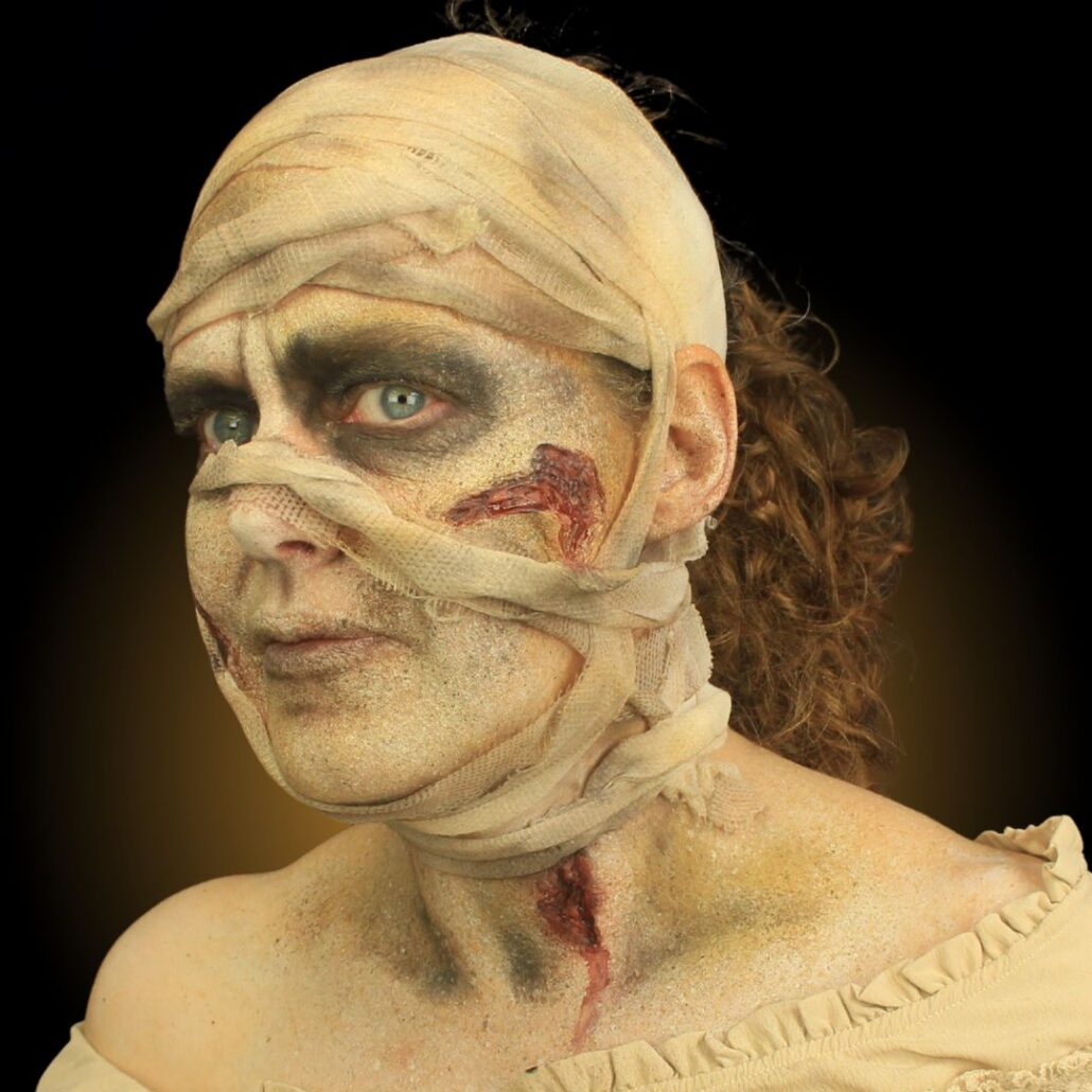 Wil jij deze look zelf maken? Alle gebruikte materialen vind je overzichtelijk in onze webshop. En wil je nog meer enge creaties leren? Bekijk dan ook onze andere Halloween Schmink Voorbeelden en SFX Make-up Tutorials voor nóg meer inspiratie. Alles wat je nodig hebt voor deze Mummy Makeup vind je natuurlijk in onze webwinkel. Heb je vragen? Stuur me gerust een berichtje; ik denk graag met je mee.