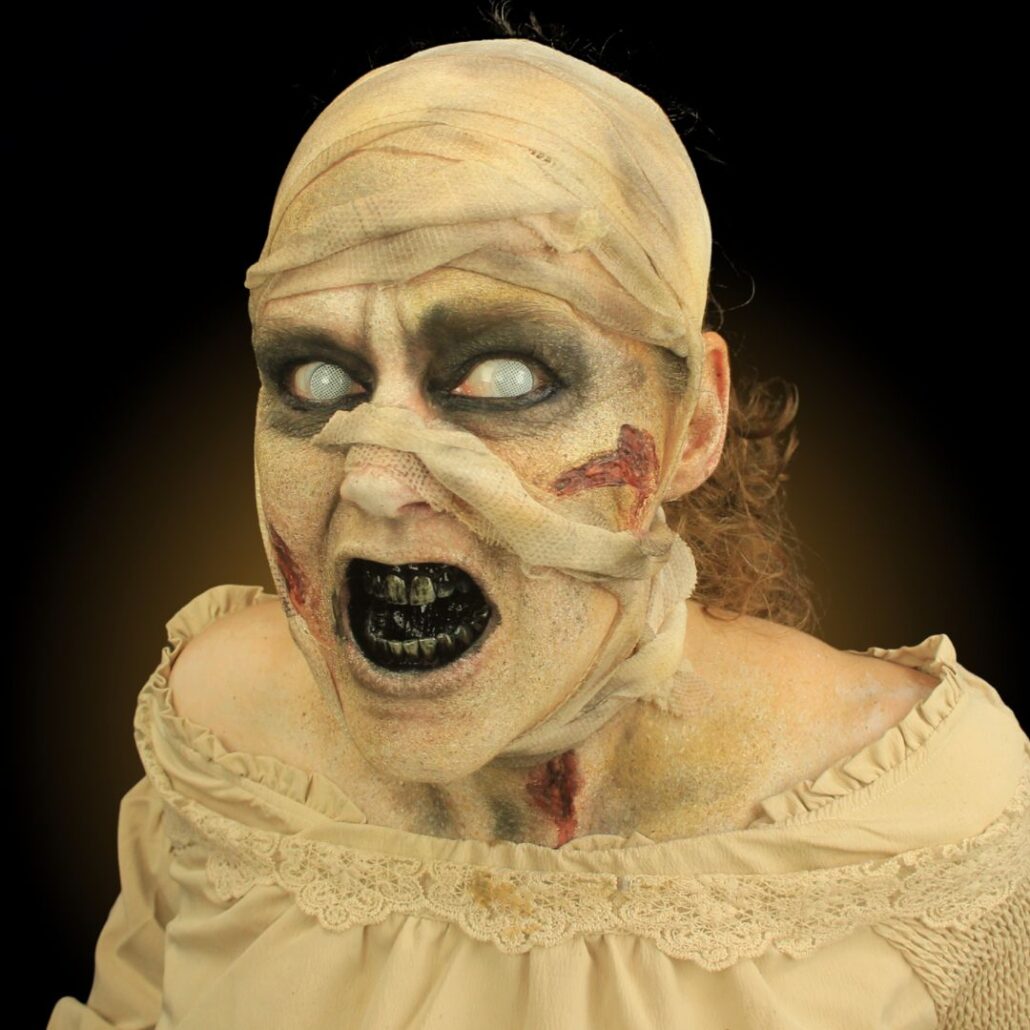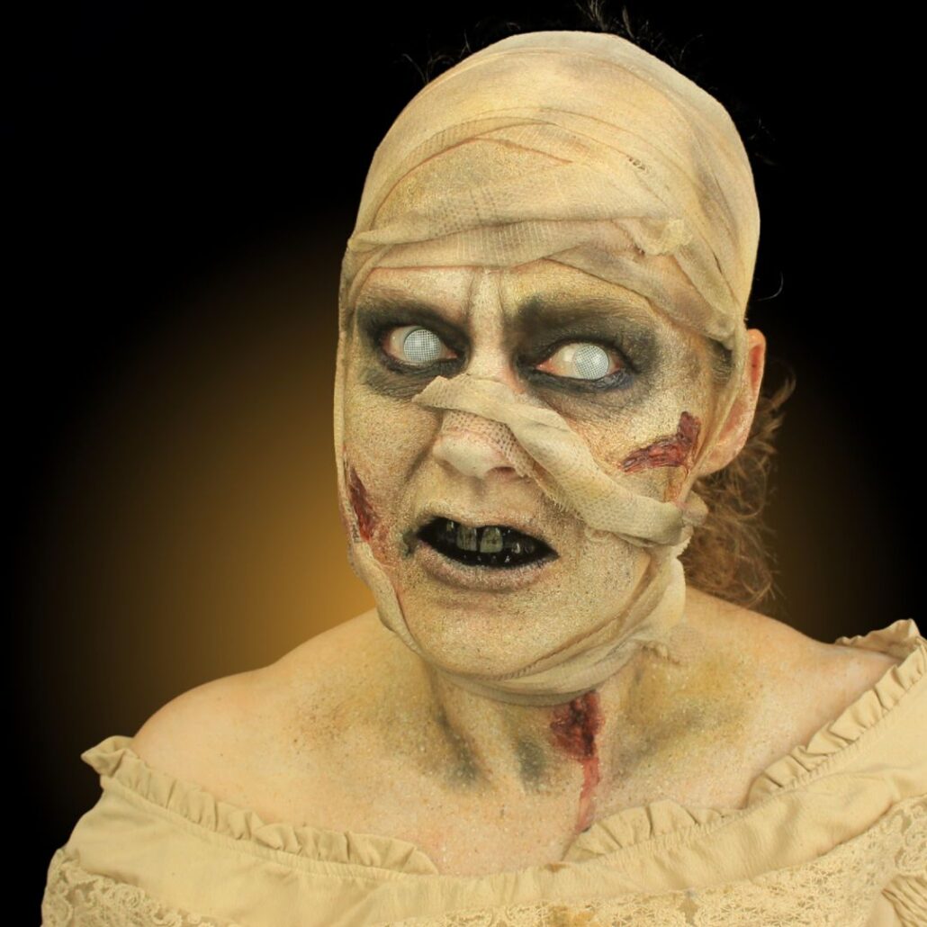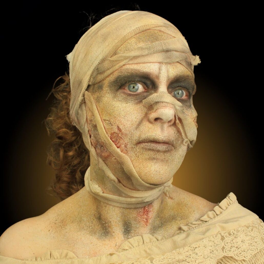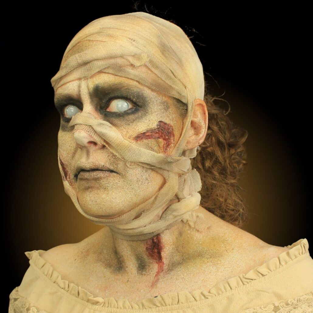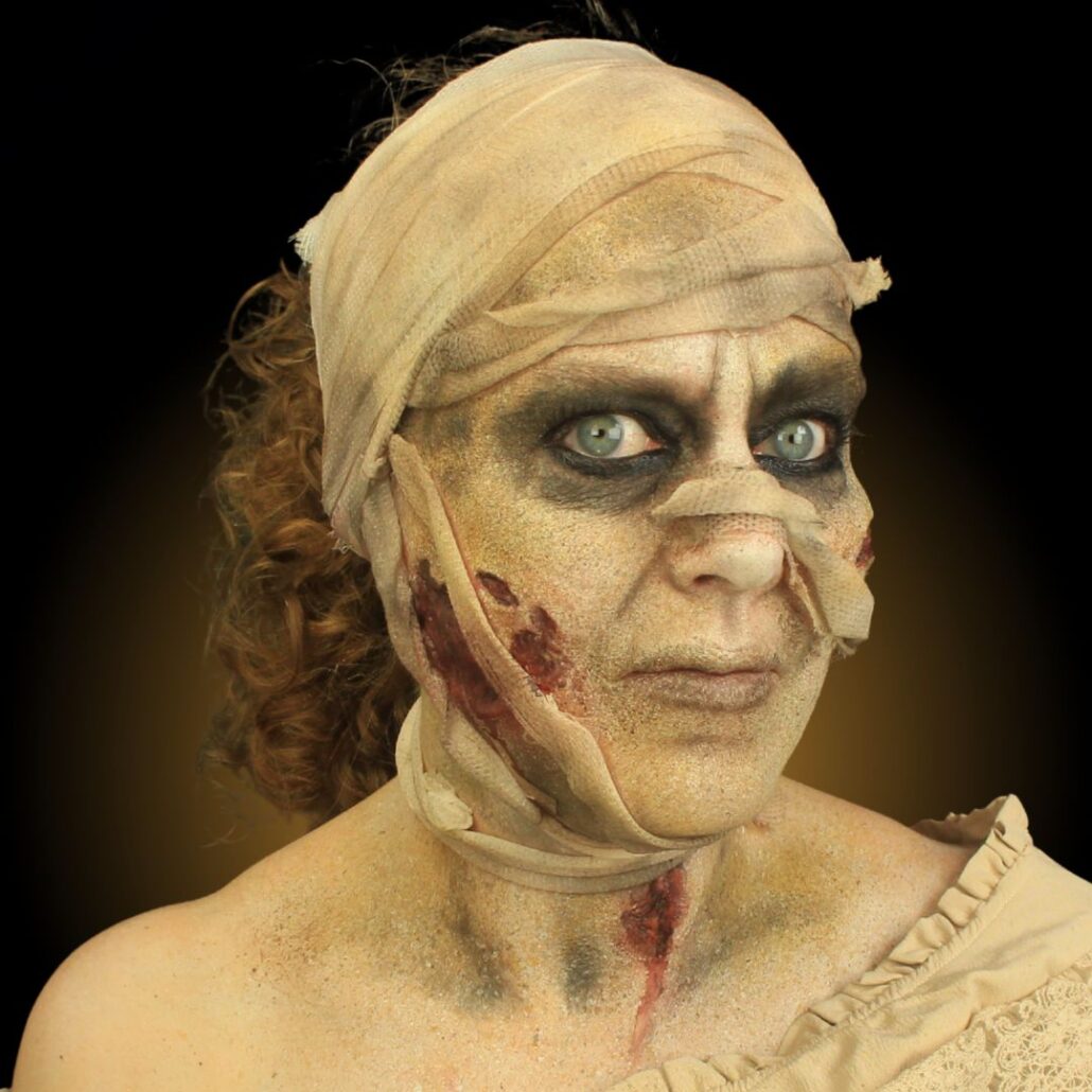 Wil jij deze look zelf maken? Alle gebruikte materialen vind je overzichtelijk in onze webshop. En wil je nog meer enge creaties leren? Bekijk dan ook onze andere Halloween Schmink Voorbeelden en SFX Make-up Tutorials voor nóg meer inspiratie. Alles wat je nodig hebt voor deze Mummy Makeup vind je natuurlijk in onze webwinkel. Heb je vragen? Stuur me gerust een berichtje; ik denk graag met je mee.
