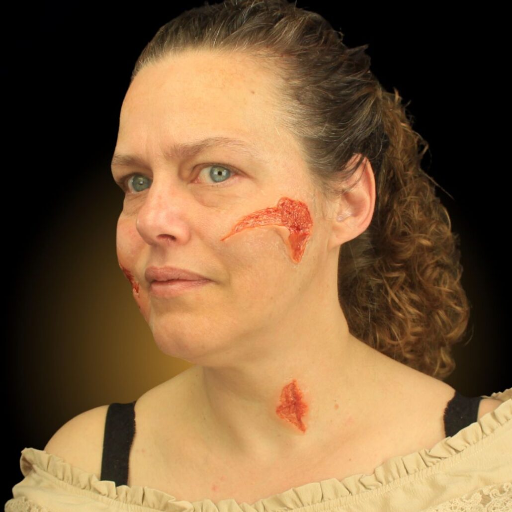 - Tinsley Transfers – Gouged 3D FX Transfer – Op de linkerwang en in de hals