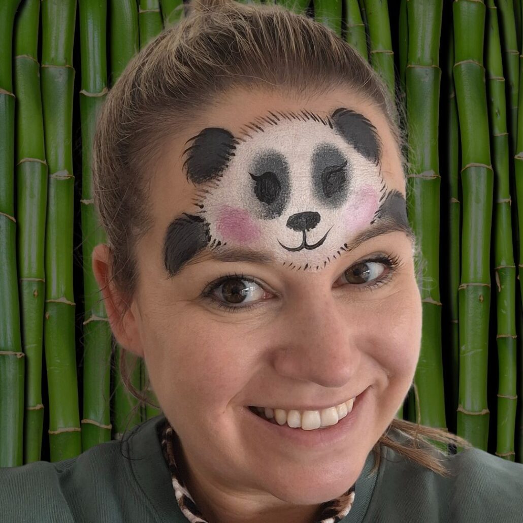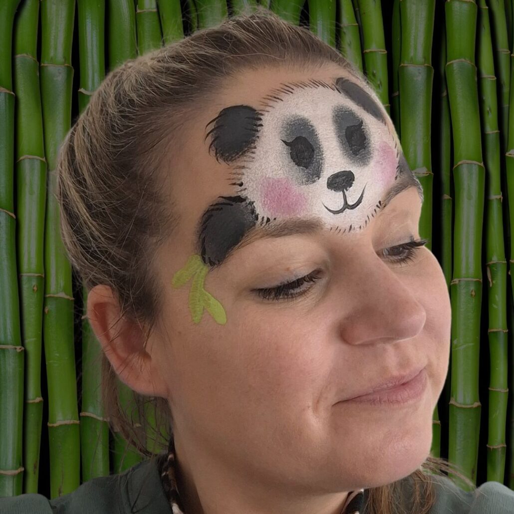 Hoe lief is deze panda?! Een ontwerp dat kinderen laat stralen. Het is eenvoudig te schminken, goed zichtbaar van een afstand én leuk om te maken. Bekijk ook eens onze populaire ontwerpen zoals eenhoorns, tijgers, konijnen of katten in de categorie dieren schminkvoorbeelden.