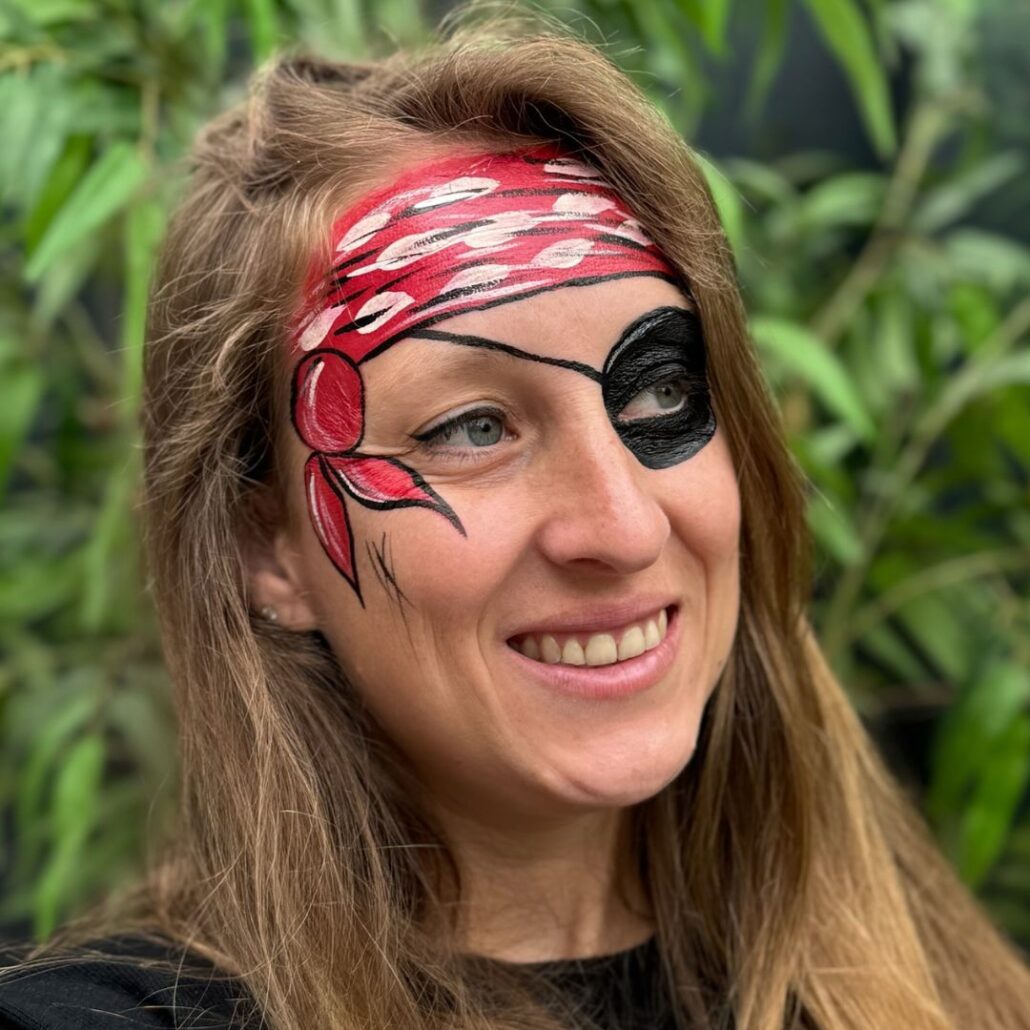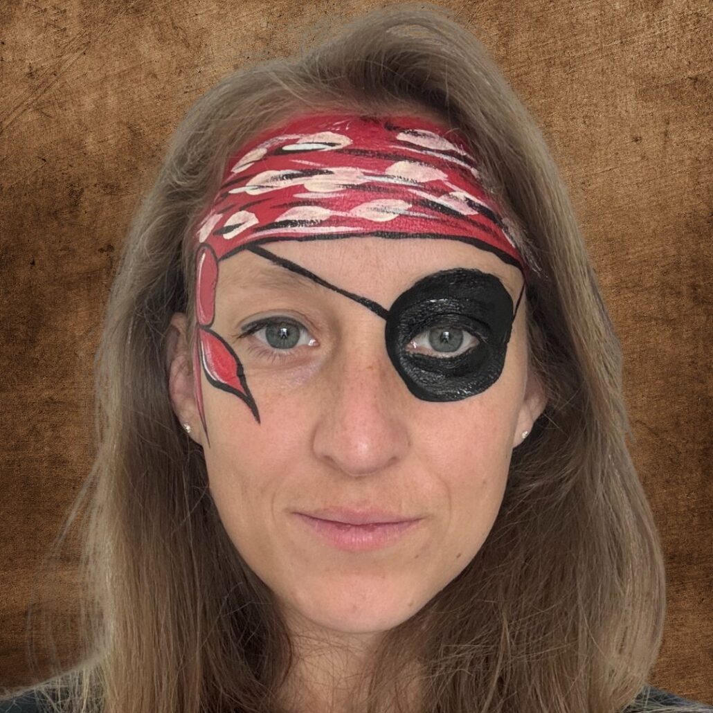 Wil je een stoere look schminken die iedereen herkent? Dan is dit piraat schmink voorbeeld perfect voor jou! Of je nu een kinderfeestje organiseert, op een braderie staat te schminken of gewoon thuis aan het oefenen bent — dit ontwerp is snel, duidelijk en makkelijk. Ideaal dus voor wie piraat schminken eenvoudig wil houden.