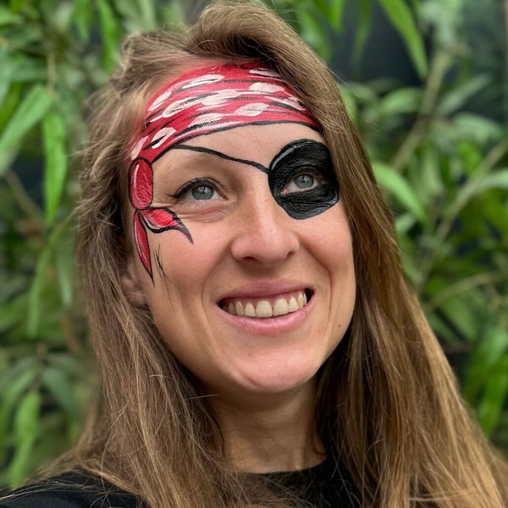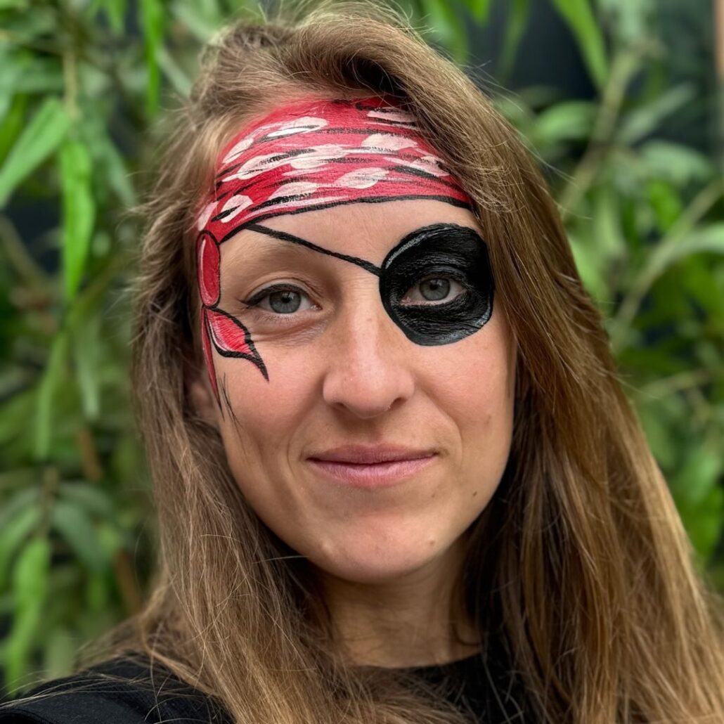 En tadaa — klaar ben je! 🎉 In slechts vier stappen heb je een superstoere piraat geschminkt die bij elk kind in de smaak zal vallen. Dit ontwerp is: