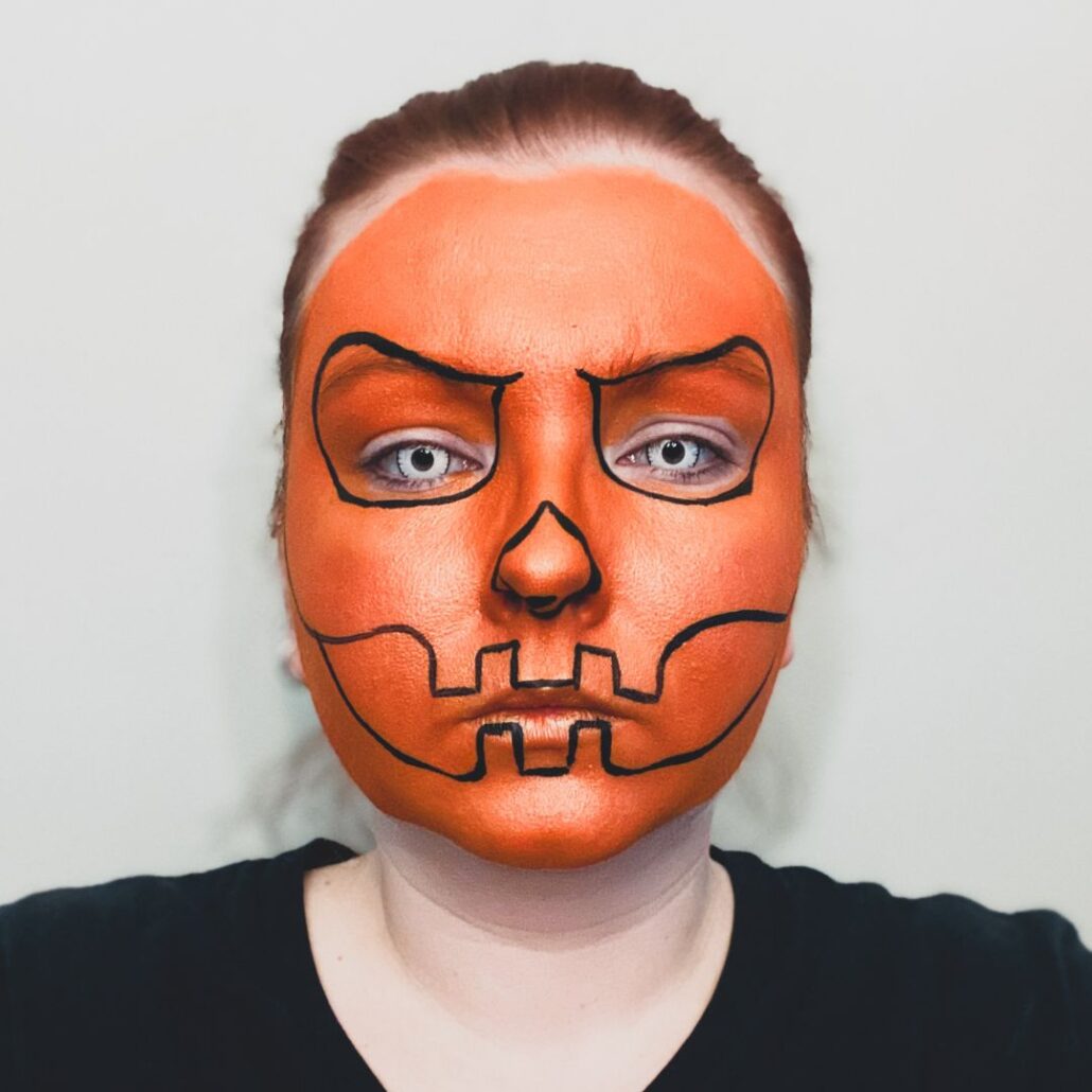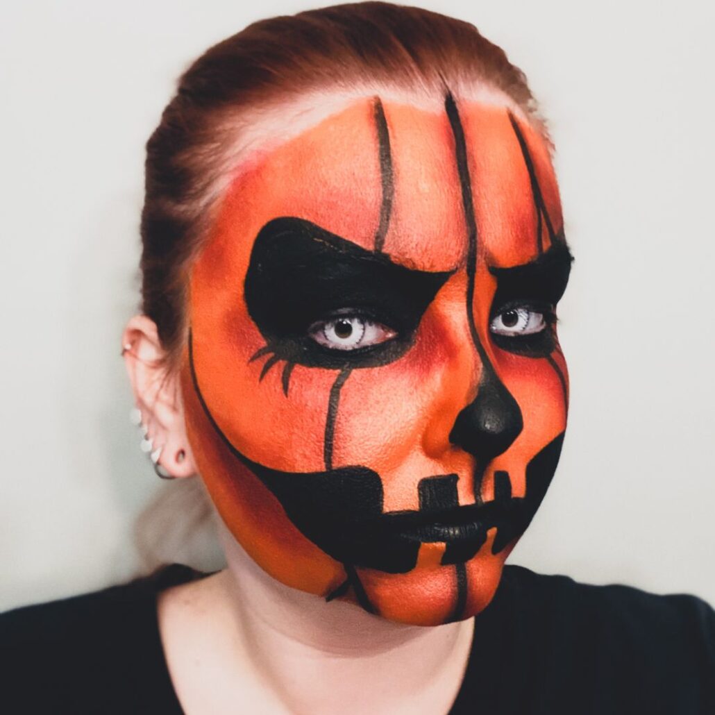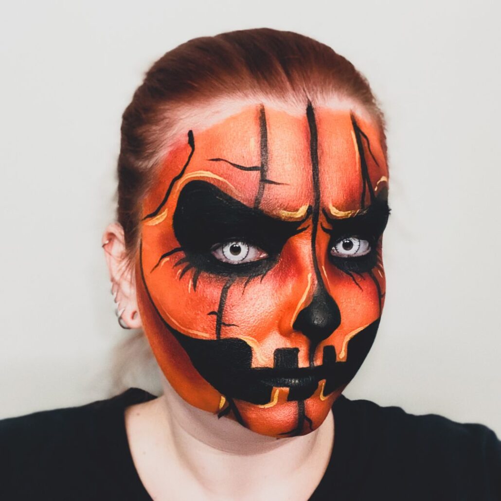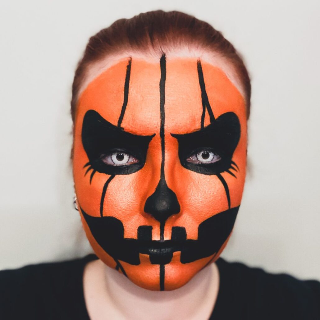 Op zoek naar een leuke en makkelijke pompoen schmink look voor Halloween? Dan is dit ontwerp precies wat je zoekt! Met deze oranje basis, donkere lijnen en subtiele highlights maak je in een paar eenvoudige stappen een echte blikvanger.