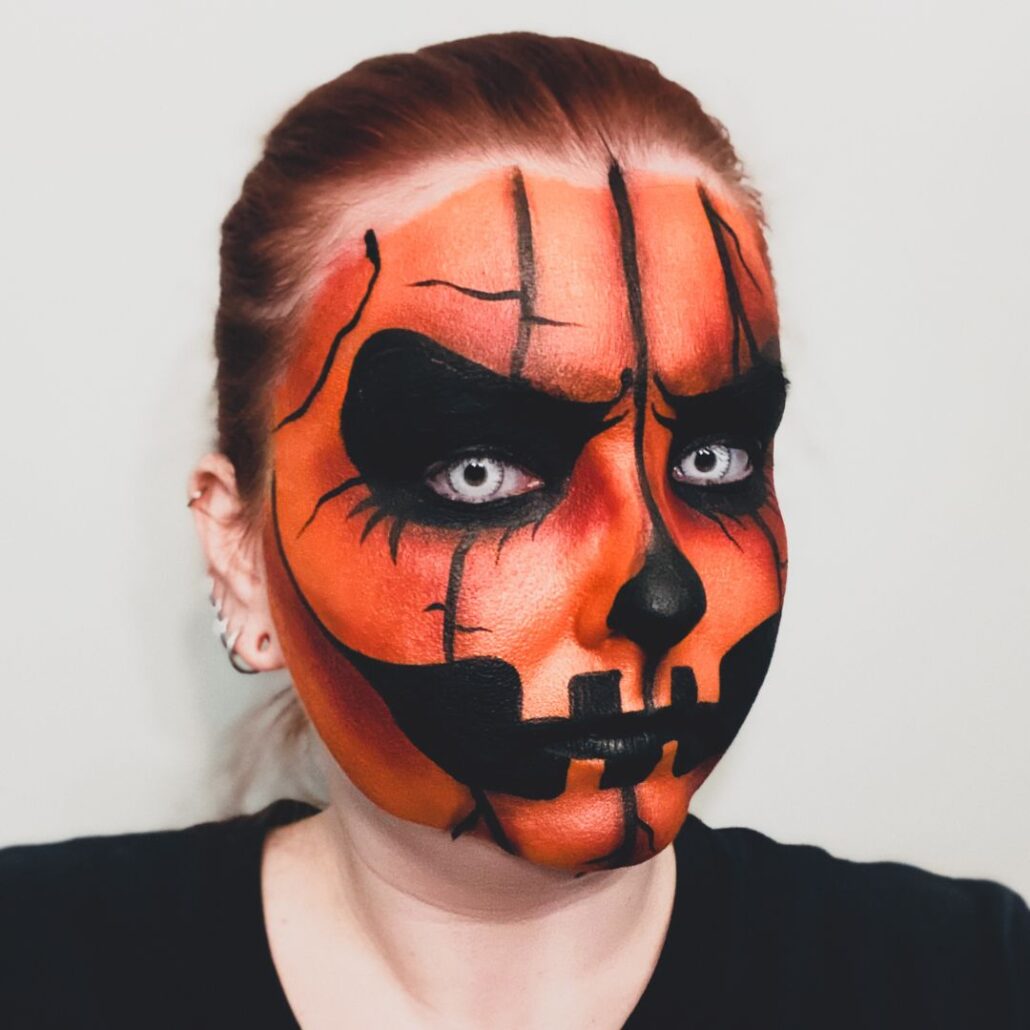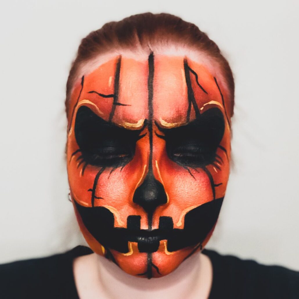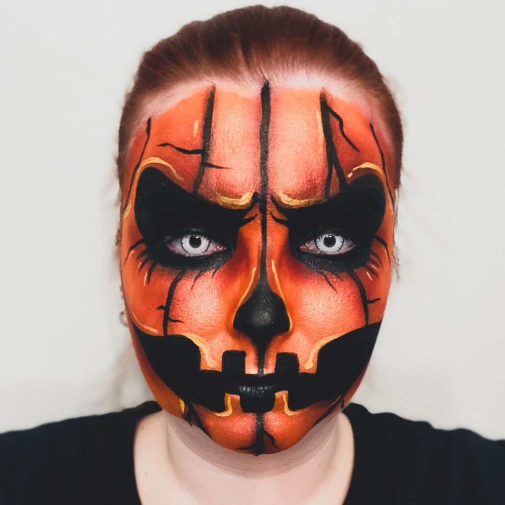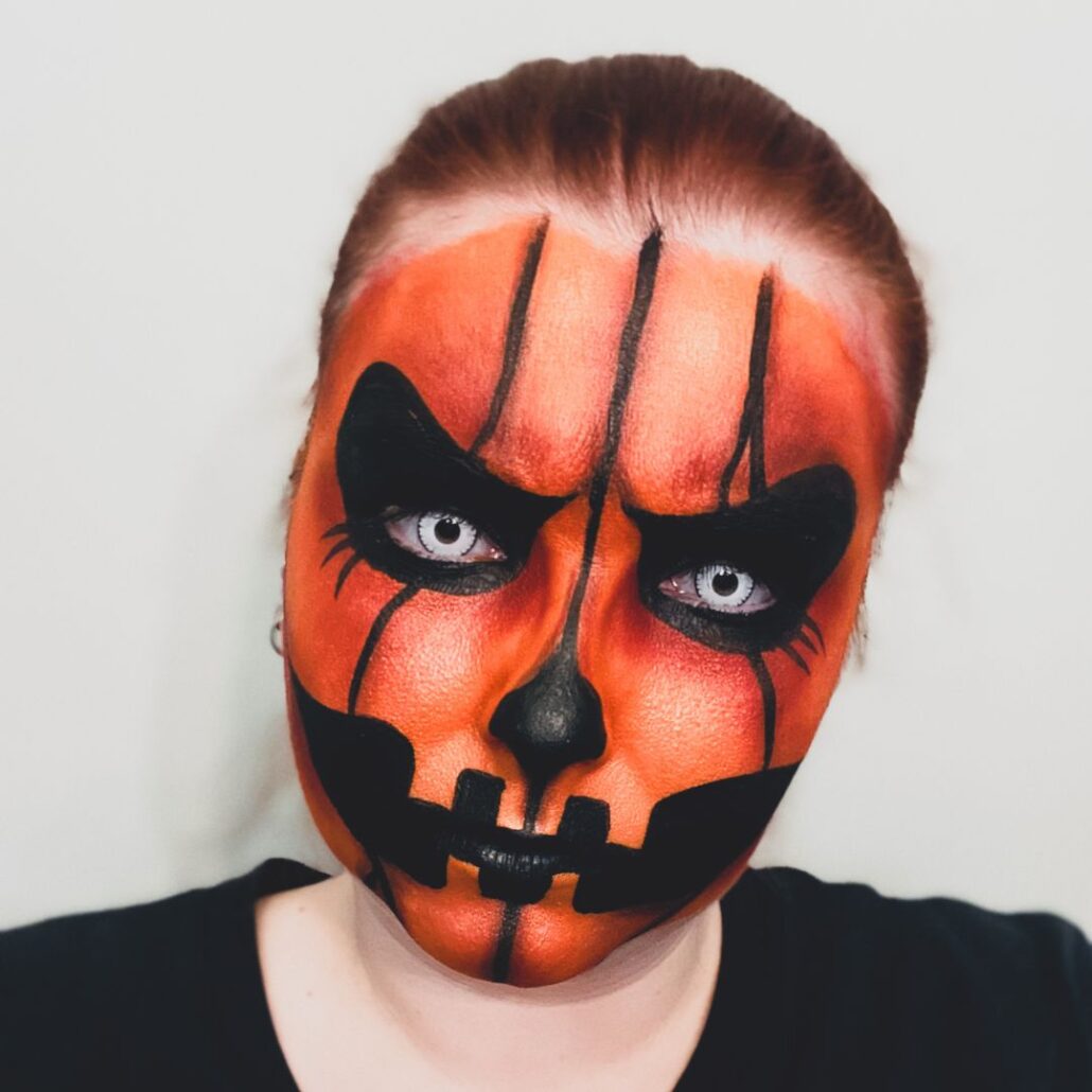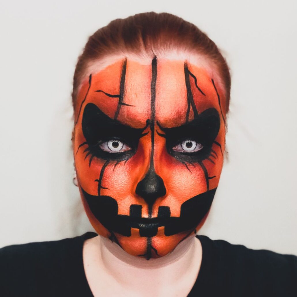 Op zoek naar een leuke en makkelijke pompoen schmink look voor Halloween? Dan is dit ontwerp precies wat je zoekt! Met deze oranje basis, donkere lijnen en subtiele highlights maak je in een paar eenvoudige stappen een echte blikvanger.