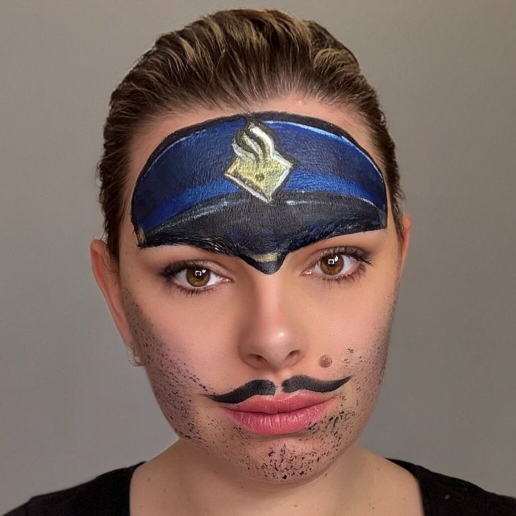 Met dit politie schminkvoorbeeld zie je hoe eenvoudig en leuk het kan zijn om een stoere look te maken. Perfect voor feesten, optredens en natuurlijk rollenspellen.