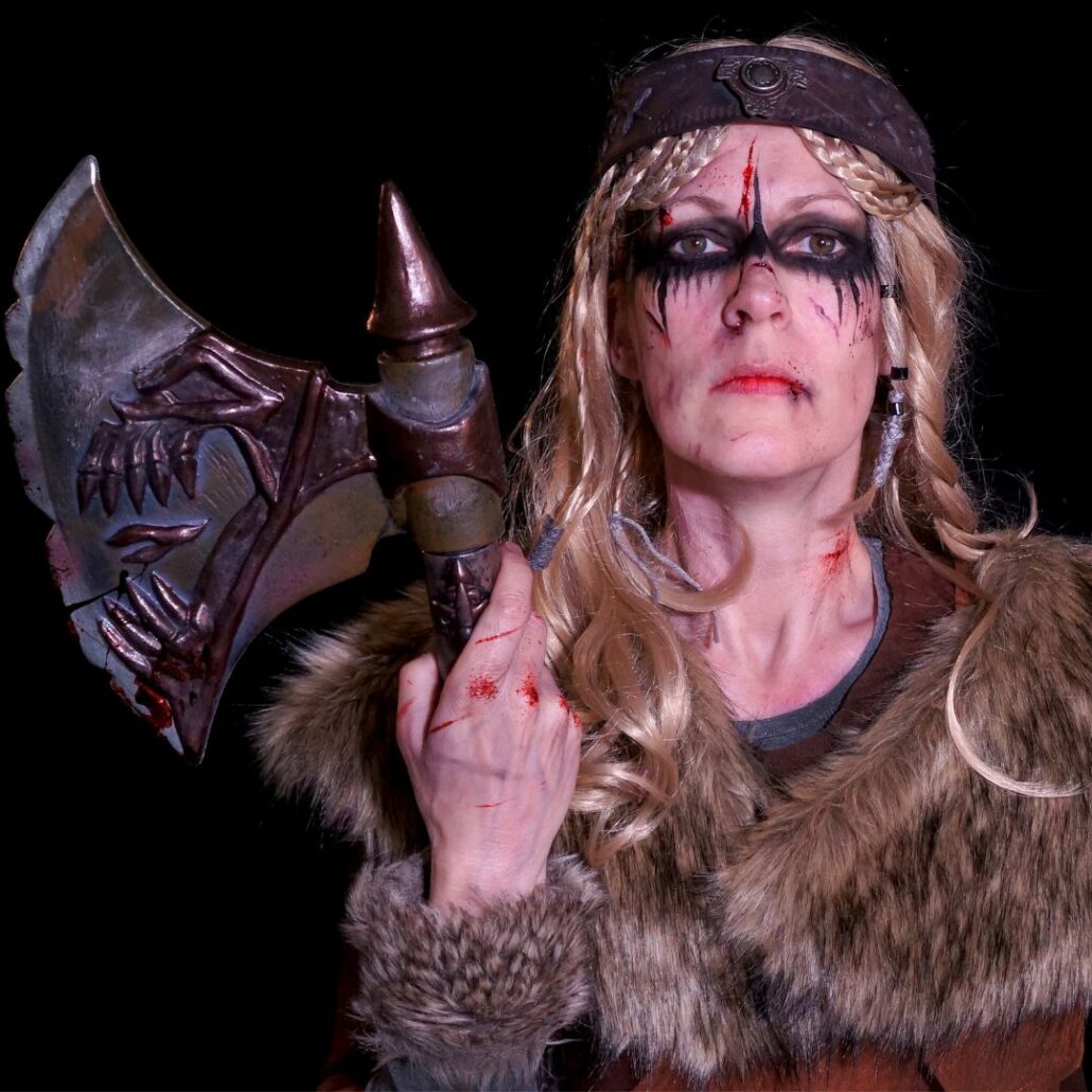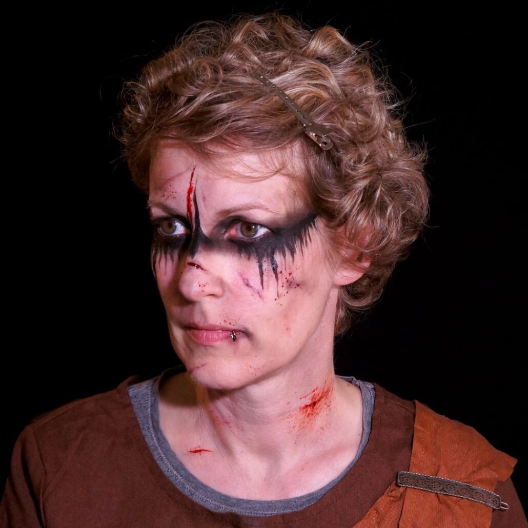 Met deze Viking makeup laat Floor zien hoe krachtig een look kan zijn wanneer je speelt met littekens, bloed en harde lijnen. Geen standaard schminkvoorbeeld, maar een stoere creatie die recht uit een Viking-saga lijkt te komen. Het mooiste? Voor dit ontwerp gebruikte Floor uitsluitend Grimas Make-up producten – puur Nederlands en favoriet bij veel grimeurs.